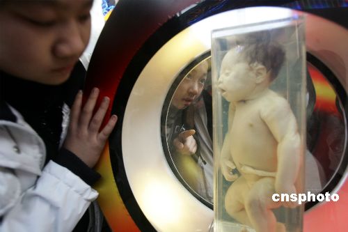 十一月二十六日,鄭州市一所中學把性教育課搬到該市科技館內上,使平時在生理課上學生覺得難為情的授課內容,通過標本等接受性教育。中新社發(fā) 慎重 攝