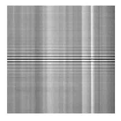 圖1、干涉圖(橫軸為空間像元,縱軸為干涉曲線采樣點數,本圖是右圖從上向下第一行對應干涉圖)
