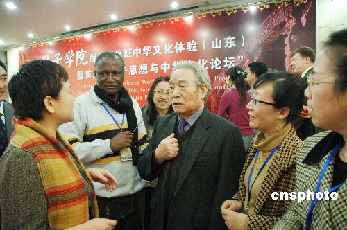 12月16日至18日,由中國國家漢辦主辦的全球孔子學(xué)院院長研修班中華文化體驗(yàn)暨首屆“孔子思想與中華文化論壇”在山東大學(xué)舉行。活動(dòng)期間,來自18個(gè)國家34個(gè)孔子學(xué)院的44名外方院長赴孔子故里——山東曲阜,參觀考察了孔府、孔廟和孔子研究院,體驗(yàn)中華文化,并出席首屆“孔子思想與中華文化論壇”,聆聽山東大學(xué)儒學(xué)研究中心著名教授丁冠之和傅有德教授主講的《孔子,我們共同的老師》、《論言說:中西差異及其根源》的演講。背景資料:孔子學(xué)院是中外合作建立的非營利性教育機(jī)構(gòu),其宗旨和使命是增進(jìn)世界人民對中國語言和文化的了解,發(fā)展中國與外國的友好關(guān)系,促進(jìn)世界多元文化發(fā)展,并以東方圣人孔子的名字命名。從2004年開始,中國已在64個(gè)國家和地區(qū)建立210所孔子學(xué)院(包括孔子課堂),其中125所已開班授課。此外,還有61個(gè)國家的200多個(gè)機(jī)構(gòu)提出開辦申請。中新社發(fā) 金云 攝