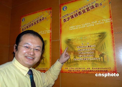 1月22日,中國對外文化集團在北京宣布,由中國對外文化集團等單位聯合主辦的“文化中國2008維也納金色大廳青少年新春文藝晚會”,將于29日晚在奧地利維也納金色大廳舉行。這是中國青少年首次走進維也納金色大廳進行文藝表演。中新社發 潘旭臨 攝