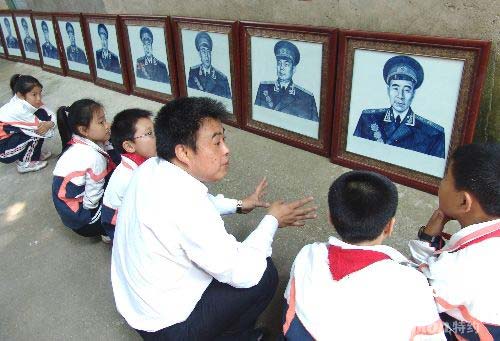 近日,世界上首套青花釉彩瓷板畫《十大元帥》問世。這套作品由中國高級工藝美術師占曉初歷時10個月創作完成,采取西畫和國畫水墨相結合方式,效果突出,表現了青花的魅力。據了解,作者準備把它獻給國家軍事博物館。 中新社發 石衛明 攝