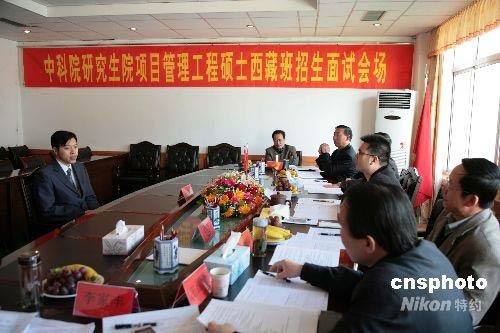 5月8日,中國科學院研究生院首次西藏研究生班招生在拉薩面試。今天是北京奧運圣火勝利登頂珠峰的一天,上午的招生面試也推遲了一個小時,專家及考生觀看了北京奧運圣火勝利登頂珠峰的電視直播。隨后來自西藏各個行業的40多名藏漢考生懷著激動和喜悅的心情參加了本次面試答辯。中新社發 扎西朗杰 攝
