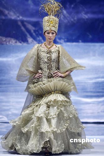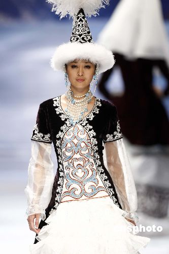 十一月四日,2007年中國國際時裝周在北京繼續進行,在新疆服裝設計師孫秀琴時裝專場發布會上,設計師用質樸的服裝語言為觀眾呈現了新疆優美、燦爛的民族服飾文化。中新社發 盛佳鵬 攝