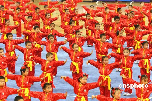 圖為在開(kāi)幕式上,由百余名兒童組成的表演隊(duì)為在場(chǎng)觀眾奉獻(xiàn)精彩的表演。