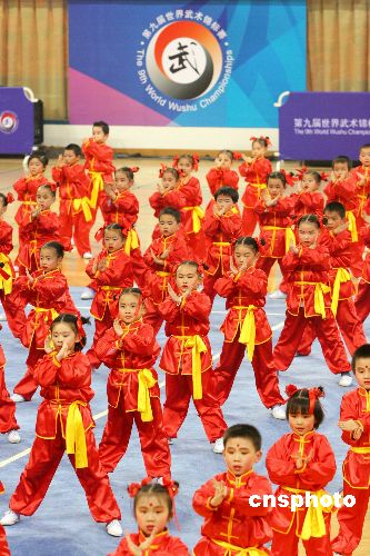 圖:武術(shù)世錦賽開(kāi)幕 千人同打太極拳(2)