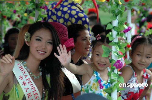 十一月十七日,參加第五十七屆世界小姐總決賽的一百多位佳麗參加了海南島歡樂節三亞分會場的活動,并在三亞市區巡游,與市民和游客們共享歡樂。中新社發 尹海明 攝