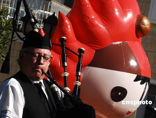 美國風笛手祝福北京奧運。