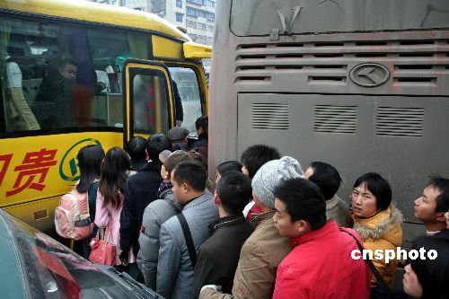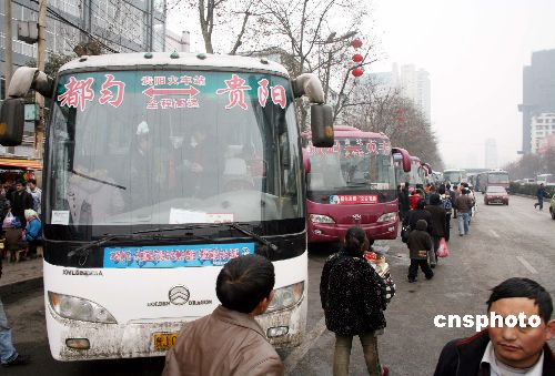 1月31日,在貴陽市遵義路,旅客們登上貴陽至都勻、凱里的長途客車。據貴陽交通部門信息,當天貴遵路、貴新路等多條高速公路已經開通運營。 中新社發 pengnian 攝