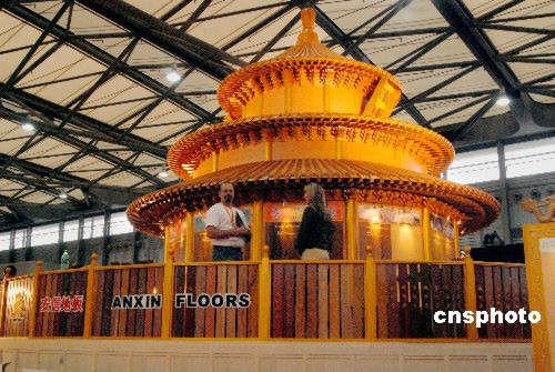 圖:硬木地板"天壇祈年殿"亮相"地博會"