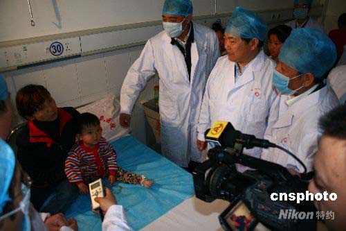 4月29日,安徽省省長王三運先后來到阜陽市第二人民醫(yī)院和市人民醫(yī)院看望慰問患病孩子和家屬。中新社發(fā) 穎慧 攝