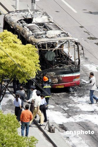 5月5日上午,上海楊浦區黃興路國順路發生一起公交車起火燃燒事故,截至目前,該火災造成3人死亡,12人受傷。火災原因正在調查中。中新社發 滬分 攝