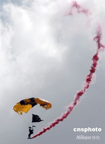 圖為美軍“金騎士”跳傘隊表演“云中漫步”。中新社發 張煒 攝