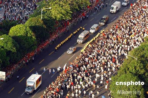 5月8日,奧運圣火在廣東深圳傳遞,深圳百萬市民在深南大道兩旁追逐奧運火炬傳遞。
