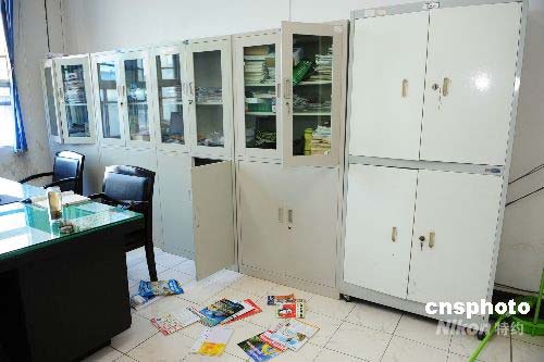 西安某單位辦公室被震開的文件柜。中新社發(fā) 唐振江 攝