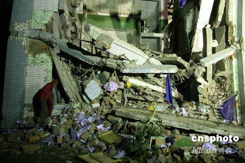 東方汽輪機(jī)廠子弟中學(xué)校舍仍掩埋約300學(xué)生。中新社發(fā) 郭晉嘉 攝