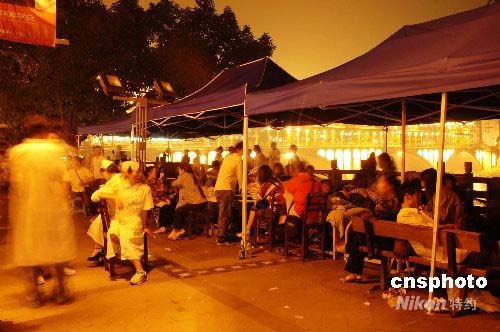 5月12日,汶川地震后雅安市有強(qiáng)烈震感。政府及時(shí)發(fā)布公告安定人心,醫(yī)院及時(shí)轉(zhuǎn)移病人到安全地方治療,醫(yī)護(hù)人員、公安干警一直堅(jiān)守崗位,群眾也在空曠地方搭帳篷過夜。中新社發(fā) 張國軍 攝