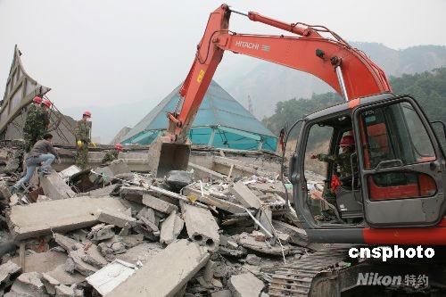 四川北川大型機械挖掘國家金庫庫款。中新社發 陳雙維 攝