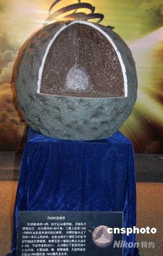 5月30日下午,以“奔月交響曲”為主題的“月球探測(cè)科普展”在中國(guó)科學(xué)技術(shù)館開(kāi)幕,展覽為期兩個(gè)月,向公眾免費(fèi)開(kāi)放。圖為展出的月球構(gòu)造模型。中新社發(fā) 孫自法 攝