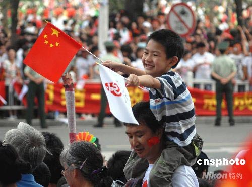 圖:武漢市民熱情迎圣火(2)