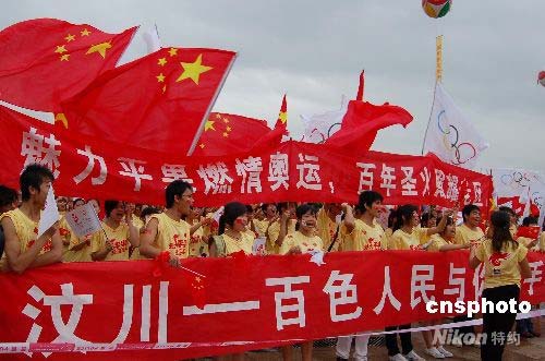 革命老區廣西百色熱情迎接圣火為汶川加油