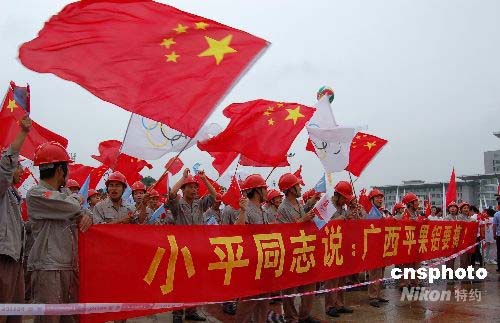 圖:革命老區(qū)廣西百色熱情迎接奧運(yùn)圣火 (3)