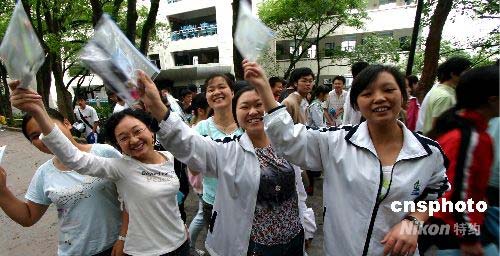6月7日,走出考場的興奮的考生。重慶市永川區(qū)的6513名高考考生經(jīng)過兩個半小時的語文答題,11:30輕松步出考場。中新社發(fā) 陳仕川 攝
