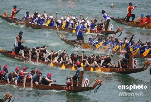 六月八日,香港在赤柱正灘舉行國際龍舟錦標賽,來自社會各界的四千名健兒參加角逐,慶祝中國傳統端午佳節。中新社發 武仲林 攝