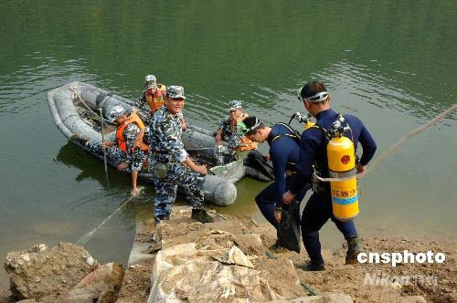 圖:海軍陸戰隊“蛙人”在震區危險水庫排水減壓(4)