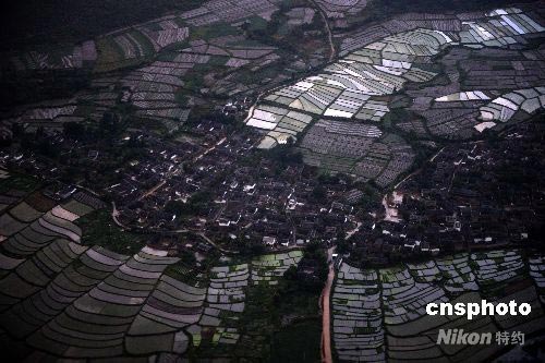 6月10日,奧運圣火將在云南麗江進行傳遞。6月9日,從飛機上俯瞰麗江風光如畫。 中新社發 廖攀 攝