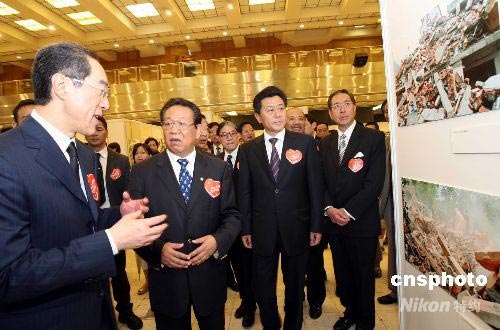 圖:香港署理行政長(zhǎng)官唐英年等參觀圖片展