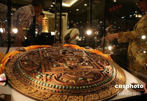 6月19日,中拍國際2008大型藝術品拍賣會的拍前預展在北京亞洲大酒店舉行,拉開此次大型春拍的序幕。據悉,拍賣會將于21日、22日兩天正式開拍,內容包括瓷器、佛像、金銀器、書畫等罕見精品。中新社發 趙雋 攝