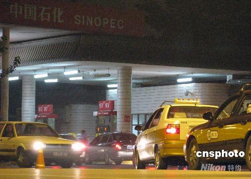 國家發展改革委決定自2008年6月20日起將汽油、柴油價格每噸提高1000元,航空煤油價格每噸提高1500元。圖為6月19日深夜,北京部分司機獲悉成品油調價消息后,趕在20日凌晨零點前在加油站排起長龍加油。 中新社發 余瑞冬 攝