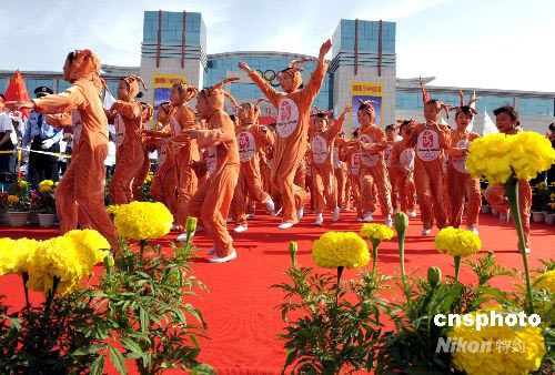 圖:格爾木孩童扮成藏羚羊歡慶奧運(yùn)圣火傳遞