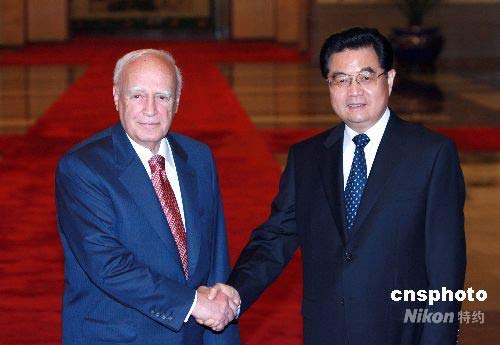 6月23日,中國國家主席胡錦濤在北京人民大會堂舉行儀式歡迎希臘總統帕普利亞斯訪華。中新社發 廖文靜 攝