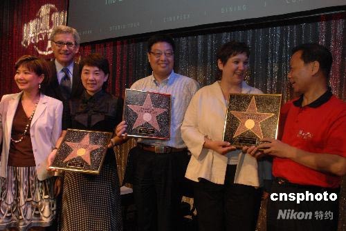 圖:中國赴美旅游首發團獲頒好萊塢古銅星