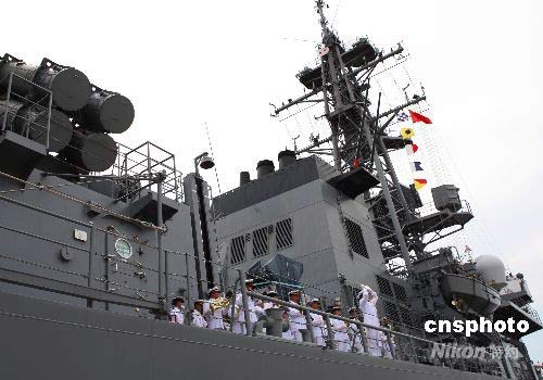 日本艦艇抵達湛江軍港時奏樂行禮