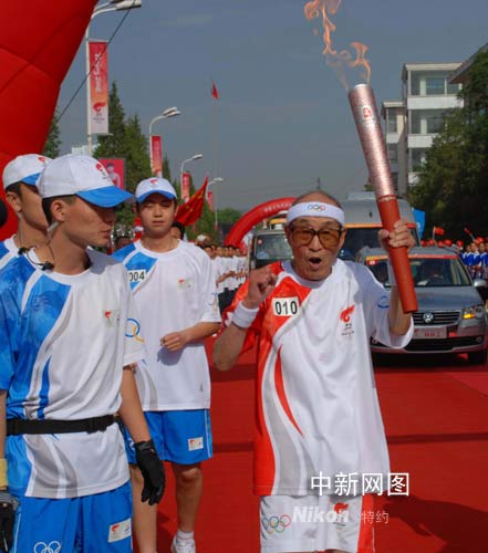 現(xiàn)年九十一歲的李智老先生是年齡最大的一位火炬手,他曾兩次與自行車隊友從大同出發(fā)到北京聲援奧運(yùn),倡導(dǎo)全民健身。張雷杰攝