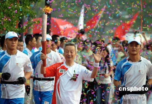 7月3日,奧運火炬在陜西楊凌傳遞,旱地農業生理生態學家、中國工程院院士山侖傳遞楊凌首棒火炬。中新社發 廖攀 攝