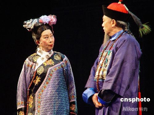 7月3日晚,香港話劇團帶來的經典話劇《德齡與慈禧》登陸北京國家大劇院。劇中慈禧由盧燕主演,年逾八旬的她曾在上世紀70年代贏得過三次臺灣金馬獎影后,并在《傾國傾城》、《瀛臺泣血》、《末代皇帝》和《德齡與慈禧》中四次扮演“慈禧”一角。劇中榮祿由香港鉆石級男配角曾江表演。他當年在《射雕英雄傳》中扮演的“黃老邪”入木三分,至今讓內地影迷津津樂道。圖為盧燕扮演的“慈禧”與曾江扮演的“榮祿”在戲中的對手戲,兩位老戲骨的表演讓人大呼過癮。中新社發 應妮 攝