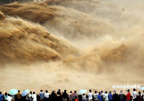 7月4日從小浪底建管局獲悉,小浪底水庫自7月3日6時開始按1500立方米/秒控泄,這標(biāo)志著小浪底水庫2008年汛前調(diào)水調(diào)沙中所承擔(dān)的任務(wù)已經(jīng)完成。此次調(diào)水調(diào)沙,小浪底水庫下泄水量約40.3億立方米,水庫補(bǔ)水約28億立方米。小浪底水庫水位由調(diào)水調(diào)沙開始時245.24米回落至調(diào)水調(diào)沙結(jié)束時222.76米。圖為6月23日、29日小浪底水庫調(diào)水調(diào)沙時的情景。中新社發(fā) 平白 攝