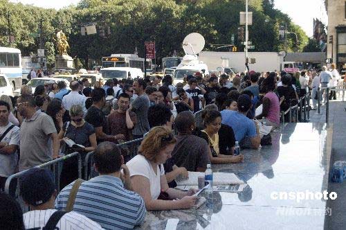 當地時間7月11日,蘋果3G版iphone手機上市,在紐約第五大道蘋果店門外,iphone迷們一早就排隊等候入場購買。中新社發 魏晞 攝
