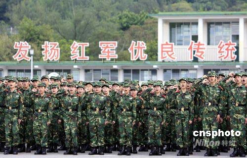 圖為學(xué)生們在開營儀式上宣誓。中新社發(fā) 張勤 攝