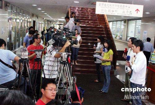 7月21日,臺灣前海軍中將雷學明等控告陳水扁等人誹謗案在臺北地方法院開庭。這是是陳水扁卸任臺灣領導人后首度至法院出庭,創下卸任領導人以被告出庭的首例。為此,臺灣大批媒體在臺北地方法院的兩個入口擺開陣仗采訪。中新社發 黃少華 攝