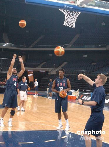 圖為七月二十八日美國男籃在澳門進行訓練。中新社發 畢永光 攝