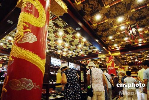 在北京奧運(yùn)即將開幕之際,有著近500年歷史的大柵欄商業(yè)街完成近年來最大規(guī)模的改造,重新正式開街迎接四方來客。圖為重新裝飾的店鋪富麗堂皇。 中新社發(fā) 王東明 攝