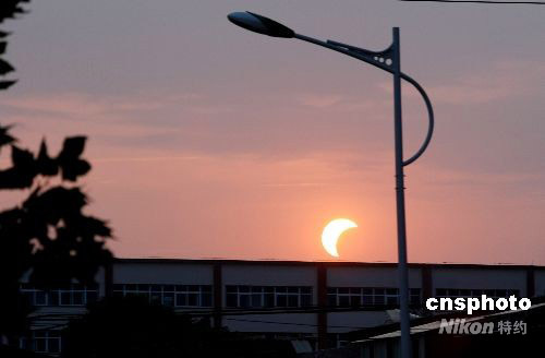 8月1日18時58分,河南許昌市出現日食。 中新社發 張燕軍 攝
