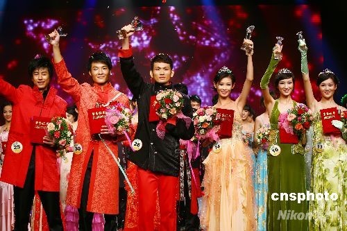 圖為來自海南的26號選手葉雷和來自山東的14號選手李營分獲男女冠軍。30號廣西選手唐明正、25號海南選手高雪竹分獲男子亞軍和季軍;16號江西選手胡琴、13號山西選手劉靜分獲女子亞軍和季軍。2008cctv模特電視大賽南寧分賽區(qū)(廣西、廣東、云南、貴州、海南)在廣西電視臺1000平米演播大廳進行總決賽。中新社發(fā) 駱文剛 攝