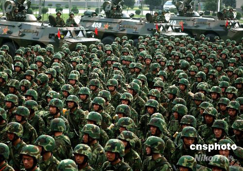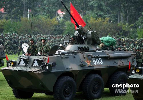 中國(guó)人民解放軍“礪兵--2008”演練8月26日拉開帷幕。當(dāng)日下午濟(jì)南軍區(qū)某機(jī)械化步兵旅參戰(zhàn)部隊(duì),火速集結(jié),進(jìn)入緊張戰(zhàn)備狀態(tài)。解放軍濟(jì)南軍區(qū)這支機(jī)械化步兵部隊(duì)與北京軍區(qū)一支數(shù)字化部隊(duì)舉行的這次跨軍區(qū)聯(lián)合實(shí)兵對(duì)抗演練,是雙方在為期一個(gè)月內(nèi)進(jìn)行現(xiàn)代條件下“背靠背”的立體化攻防演練,攻擊與反殲雙方將根據(jù)作戰(zhàn)任務(wù)和“情報(bào)”實(shí)施作戰(zhàn)計(jì)劃,以磨練部隊(duì)的戰(zhàn)斗能力。中新社發(fā) 宋吉河 攝