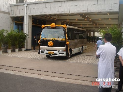 圖為當日清晨7點28分,華國鋒的靈車從北京醫院駛出。中新社發 韓凱 攝