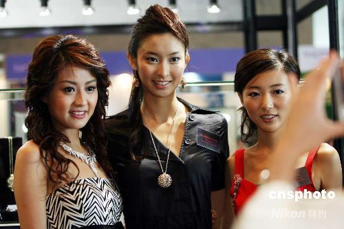 九月十八日,應屆香港小姐冠軍張舒雅、亞軍陳倩揚及季軍馬賽應邀到“香港珠寶鐘表展”上,為香港珠寶制造業廠商主辦的“2008首飾設計比賽”擔任評判。中新社發 洪少葵 攝